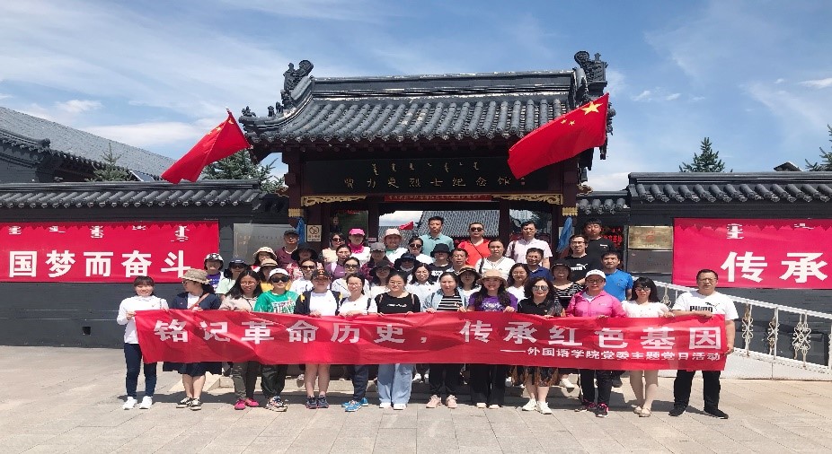 为庆祝建党99周年,弘扬革命精神,提高党性修养,2020年7月7日,太阳成集团tyc33455ccwww党委组织教职工党员和部分党外人士到土左旗红色教育基地进行了为期一天的短期培训。本次短期培训的主题是“铭记革命历史,传承红色基因”。在党校班主任老师的带领下,大家上午先到土左旗红色教育“三同教学基地”进行了捡松果、挖野菜、除草和浇水等劳动锻炼,体验了老一辈革命者艰苦奋斗的革命情怀。下午先后到贾力更故居及纪念馆、土左旗红色教育基地及当地扶贫企业悦购奶食品加工厂进行了现场教学。党员教师们共同回顾了内蒙古自治区的革命历史,认真聆听了乌兰夫、贾力更等老一辈革命家和革命先烈的动人故事,并重温入党誓词。通过接受学习培训,大家亲身体验了乌兰夫、贾力更等老一辈无产阶级革命家的爱国情怀和革命理想信念,为他们的高尚情操和崇高精神所激励,心灵得到了洗礼,增强了党性锻炼,党性修养进一步提高。大家表示,在今后的学习和工作中,将进一步坚定初心、勇担使命,积极发挥党员先锋模范作用,为学校各项事业的发展做出应有的贡献。
