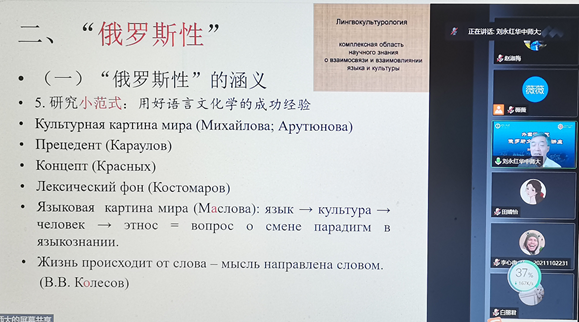 2022年9月15日,应太阳集团tyc33455俄罗斯研究中心和太阳成集团tyc33455ccwww俄语系的邀请,华中师范大学刘永红教授在线上为俄语系全体师生做了题为“论俄罗斯文化的“俄罗斯性”与研究范式转型”的讲座。