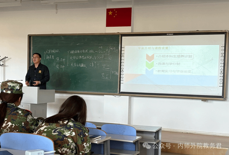 随后,系主任傅成浩老师进行了总结性发言。详细介绍了日语系的培养计划,包括课程设置、学分制和选课建议,说明了包括高中日语教师在内的广泛就业方向。此外,傅老师还关心外地同学的适应情况,向大家介绍了系内的师资构成,建议大家多与导师交流。他强调,大学生活不同于高中生活,需要大家提高自主学习意识、自觉完成课程任务,鼓励大家利用课余时间广泛阅读、积极报名各种计算机、驾照等资格考试,不负宝贵时光。同时,提醒大家在集体生活中务必注意人际关系,保持团结友爱,遵守诚信,避免不良行为或请假过多,影响考试或学业进展。